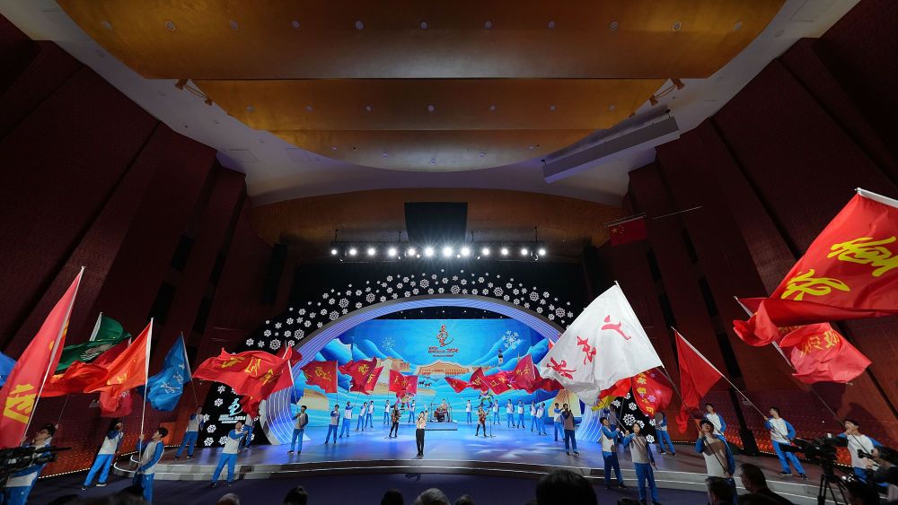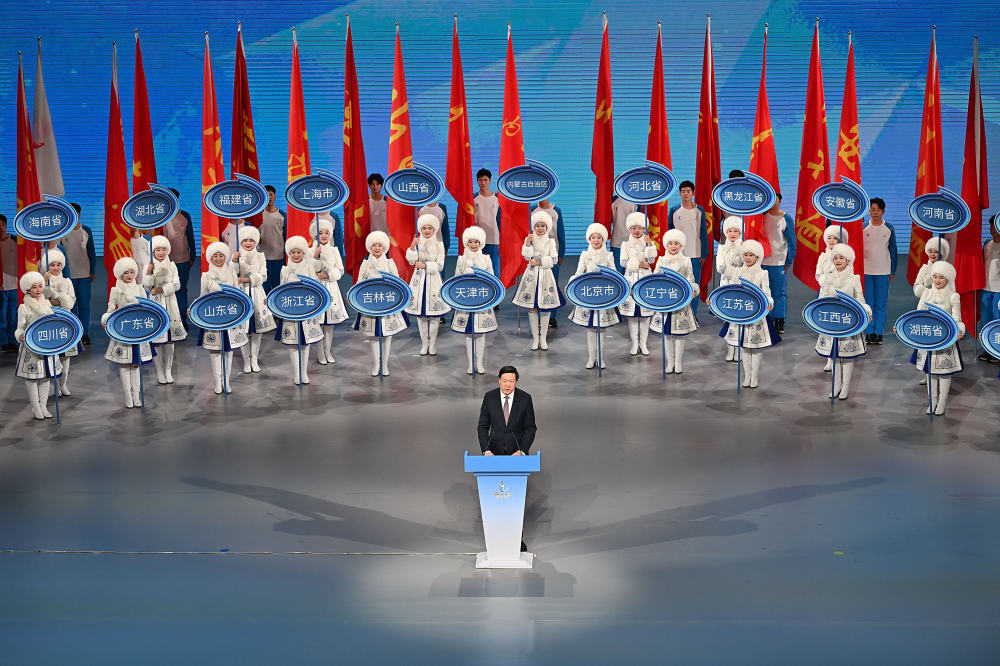 2028年,第十五届全国冬季运动会将在辽宁举办。在冬运会会旗交接环节,王莉霞将冬运会会旗交还给高志丹,高志丹将会旗交给辽宁省省长李乐成。
