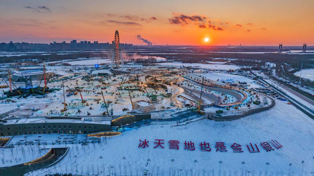 第二十六届哈尔滨冰雪大世界建造现场。新华社发(殷忠伟摄)
