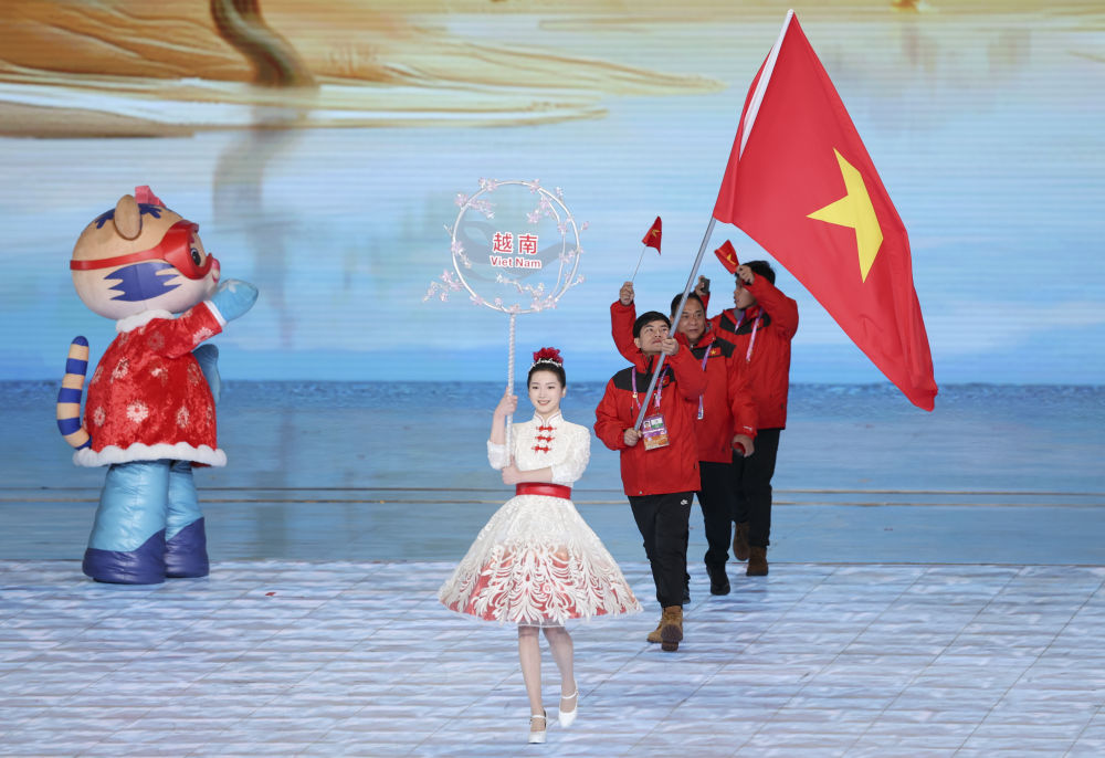 2月7日,越南体育代表团在开幕式上入场。图中最后者为杨长立。新华社记者 杨磊 摄