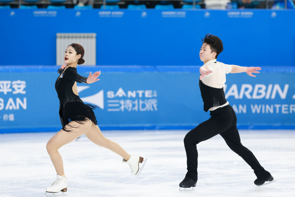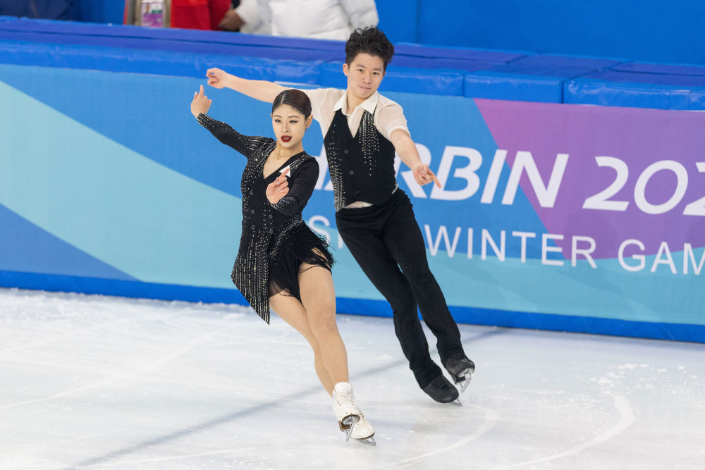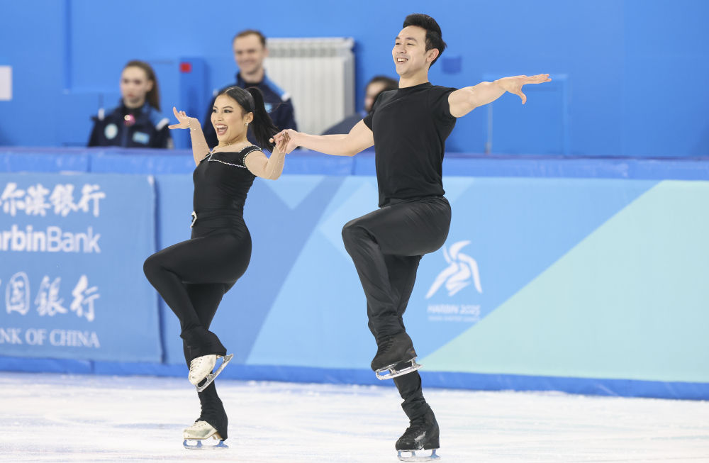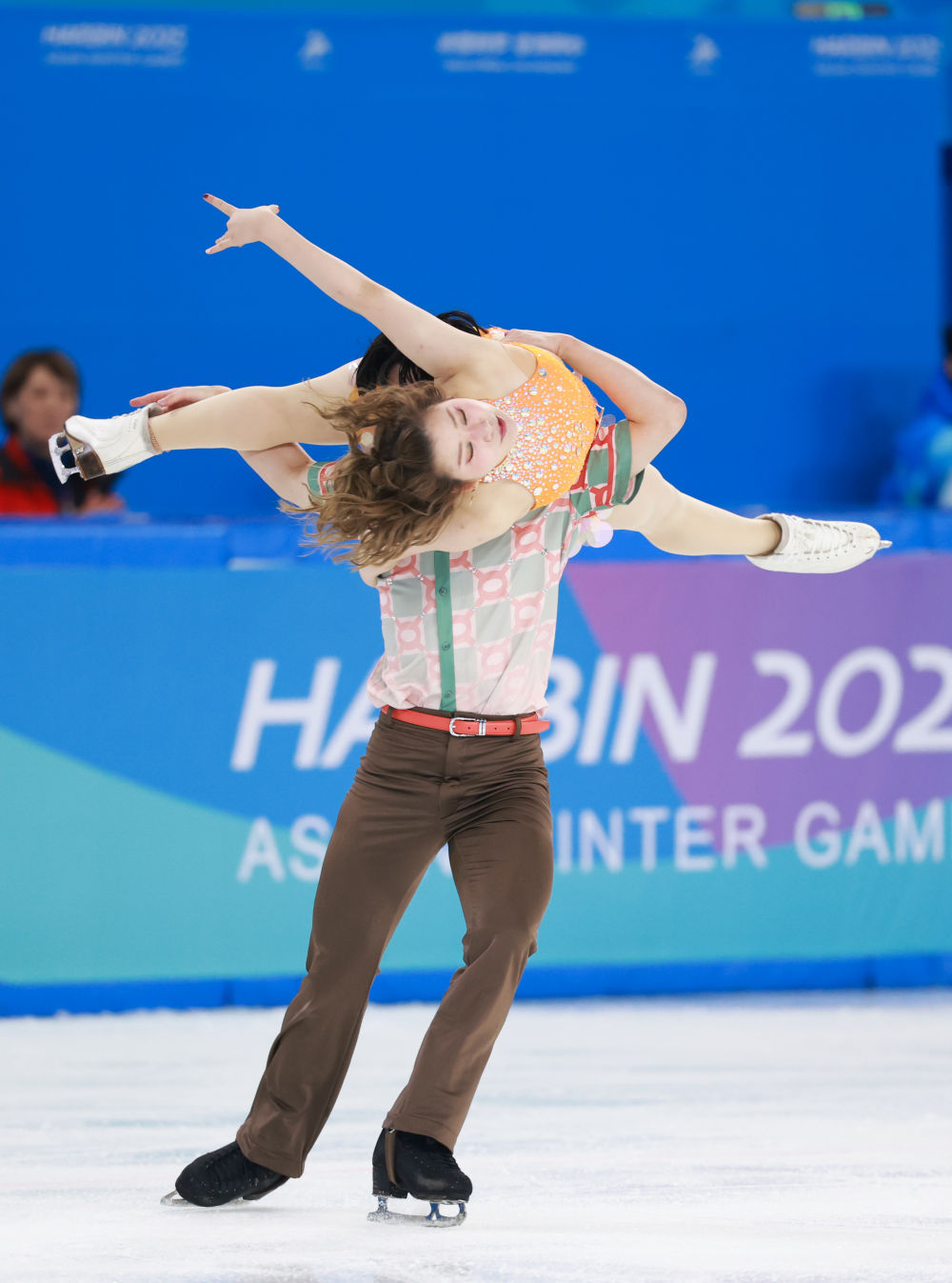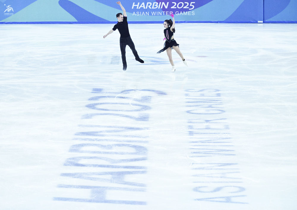 2月11日,第九届亚冬会花样滑冰冰上舞蹈韵律舞比赛在哈尔滨举行。