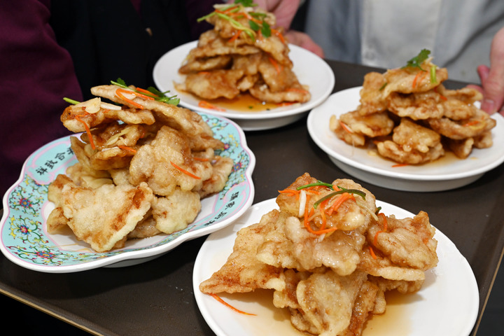 这是1月29日在哈尔滨市道里区老厨家中央大街店拍摄的刚出锅的锅包肉。新华社发(刘洋 摄)