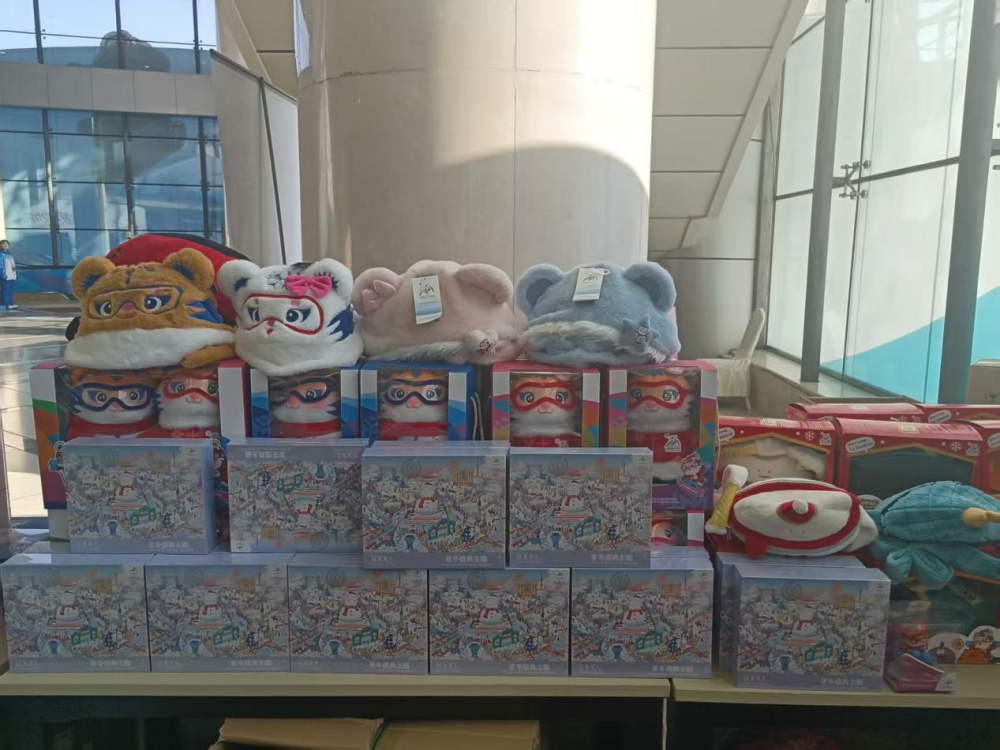 2月13日,亚冬会特许商品零售店中的吉祥物手办。新华社记者 王文源 摄