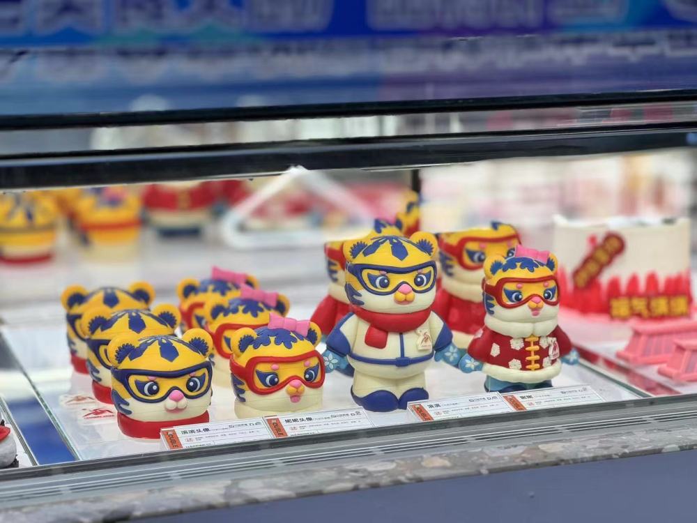 这是烘焙店内的亚冬会吉祥物造型甜品。新华社发