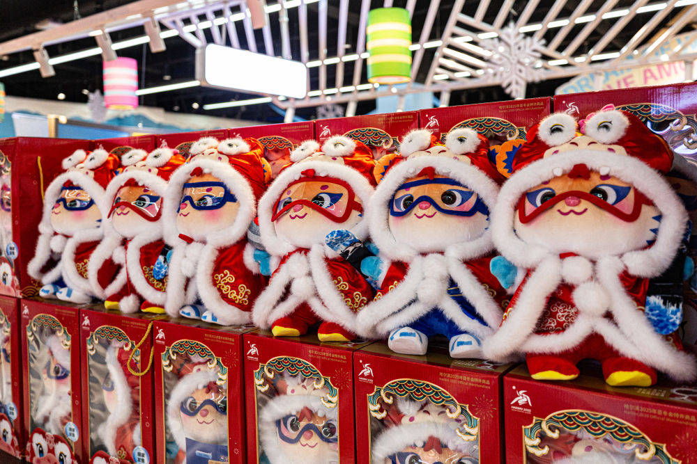 位于哈尔滨中央大街的一家亚冬会官方特许商品零售店内,以吉祥物为原型设计的贺岁公仔正在热销。正值正月,在年味正浓的“尔滨”,喜庆的公仔与新春气氛十分适配。