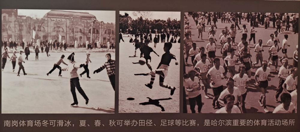 南岗博物馆中记录南岗体育场的老照片。(南岗博物馆供图)