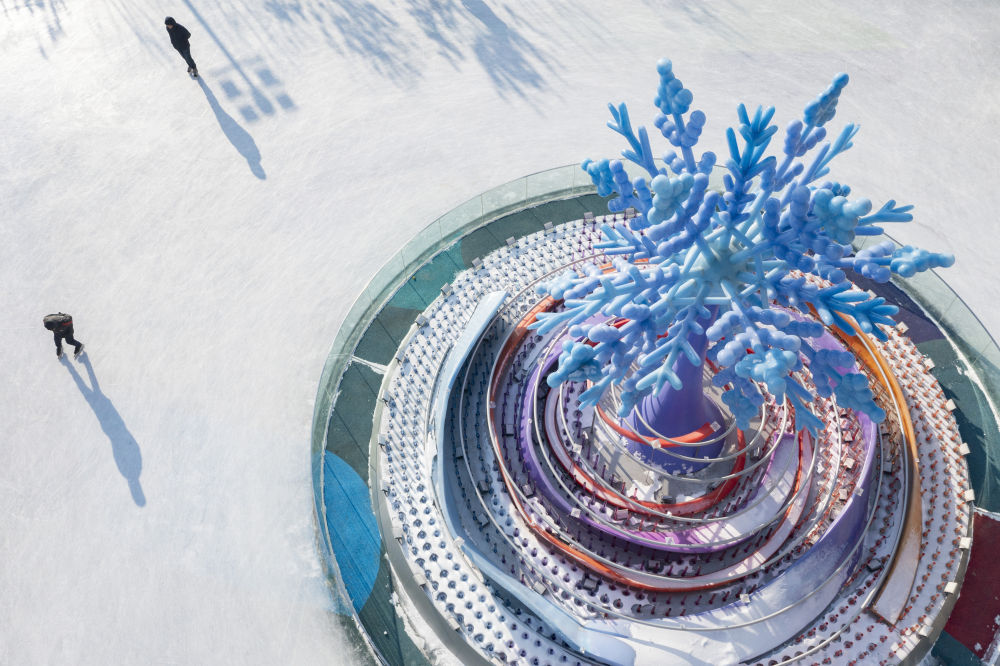 位于秋林商圈核心区域的南岗体育场是哈尔滨新晋的网红打卡点。一个主体为蓝色雪花造型的大型高透树脂水晶仿冰雕塑——“冰雪之冠”是体育场的标志,外围环抱的雪花表示“冰雪丝路”的幻彩飘带,基座上高低错落的水晶灯柱象征亚洲山地、高原和丘陵地貌,上方装饰六方幻彩水晶,代表亚洲各国家和地区异彩纷呈,与本届亚冬会的主题“冰雪同梦,亚洲同心”相得益彰。