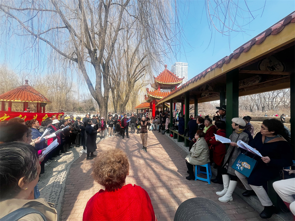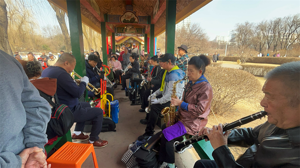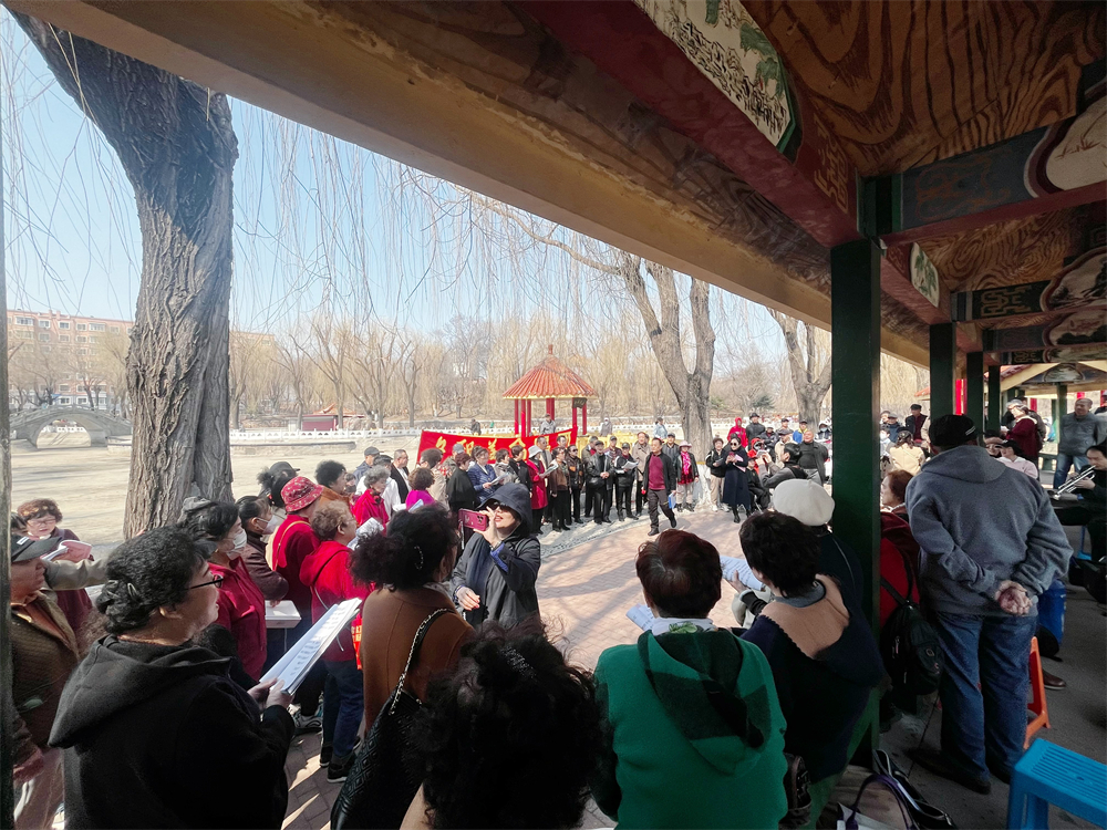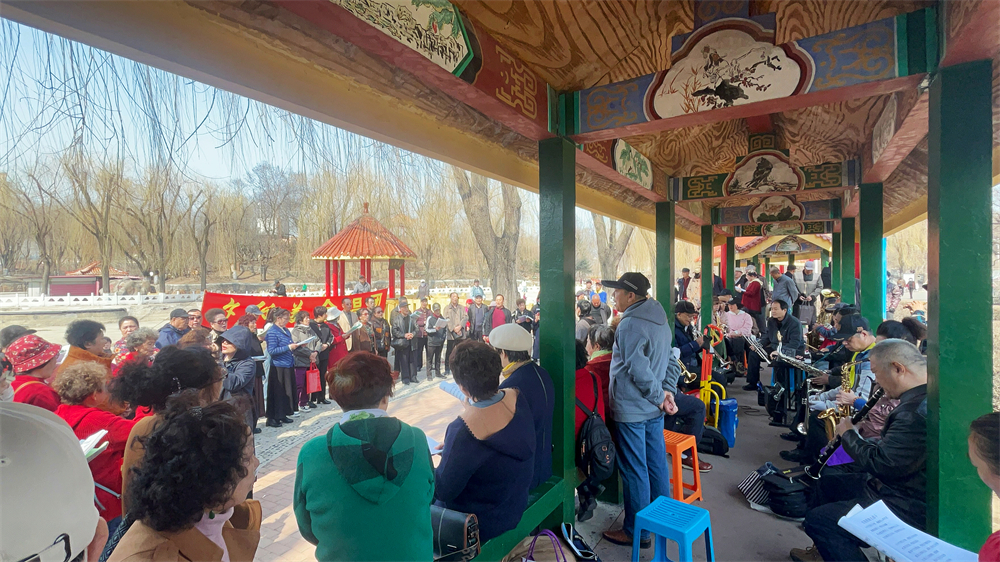 9日,哈尔滨市天气晴好,道外区古梨园内,夕阳美艺术团的音乐爱好者们汇聚在此,或演奏乐器,或引吭高歌,《父亲》、《夕阳红》、《我们的生活充满阳光》……优美的歌声引得不少市民驻足聆听,人人沉浸在音乐的魅力之中,展现着音乐之城“满城音乐满城歌”的浓厚艺术氛围。