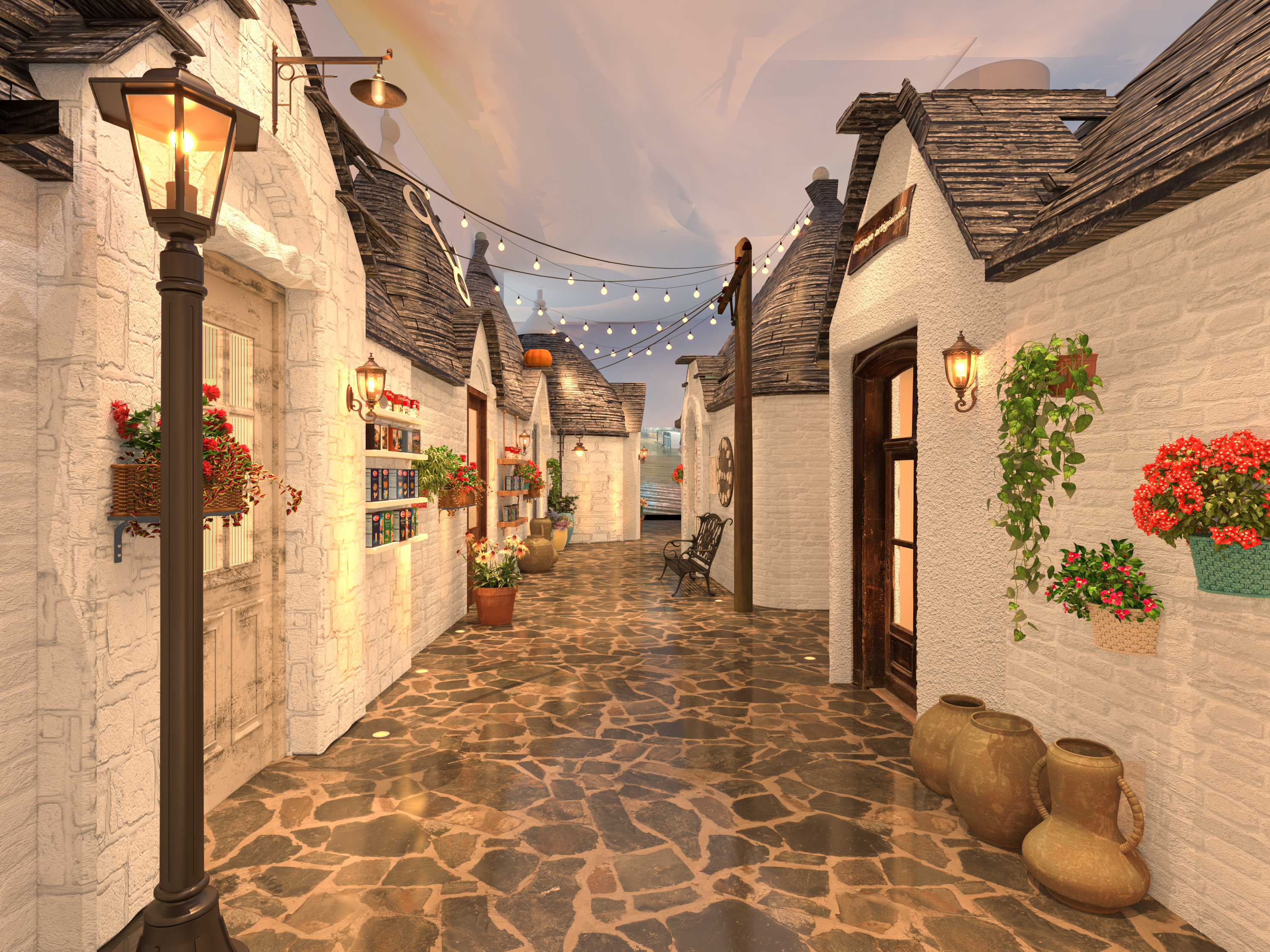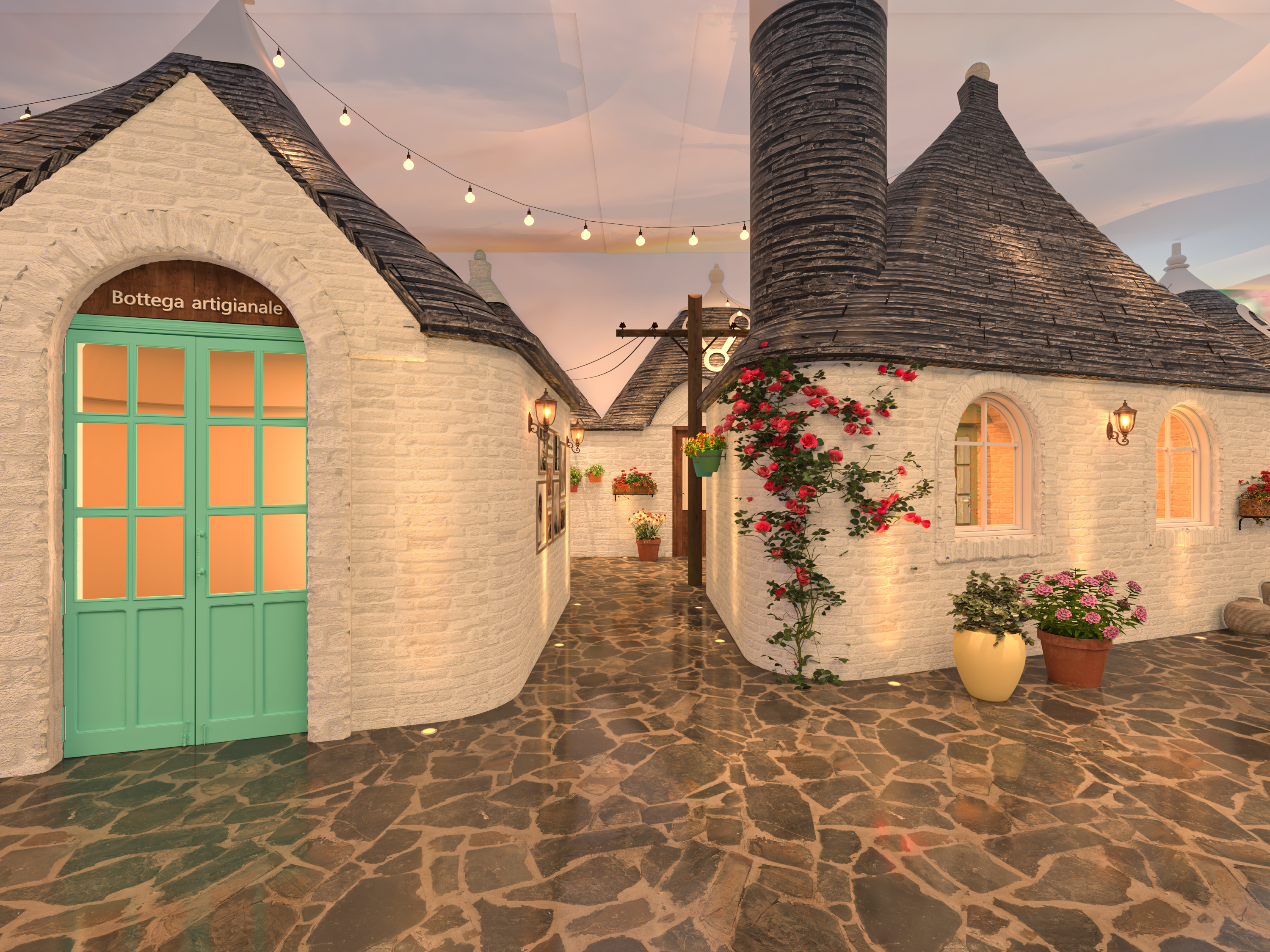 意大利阿尔贝罗贝洛的“世界文化遗产”特鲁利石屋以其独特的建筑风格闻名于世。哈尔滨极地公园完美复刻了这一全球独一无二的建筑奇观,纯白石墙与灰色蘑菇屋顶交相辉映,历史感与生活气息交织,游客仿佛穿越到了意大利的白色童话“天堂”。每一处转角都充满了惊喜,细节之处尽显匠心,无需踏出国门,即可在哈尔滨极地公园打卡这座世界级童话小镇。