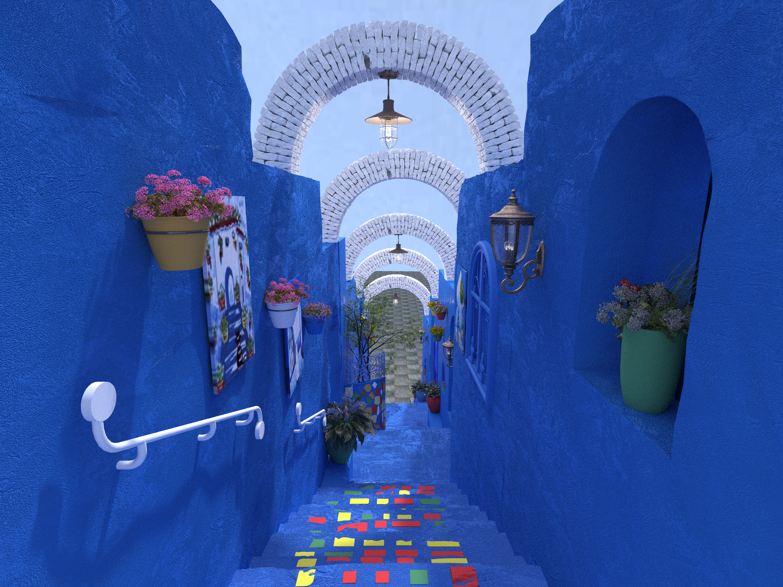 世界三大“蓝城”之一舍夫沙万小镇的梦幻蓝调也被原汁原味的呈现,极地公园将这一极具视觉冲击力的“蓝色童话”搬入园区内,墙面采用与原型一致的渐变蓝调工艺,特邀艺术家精准复刻原版手绘壁画,游客漫步其中,仿佛置身北非古街,身临其境的感受地中海随性浪漫。从墙面纹路到铁艺街椅,每一处景观皆精准还原真实小镇的风貌,以极致细节展现异国风情,为游客开启一场“无需签证”的环球旅行。