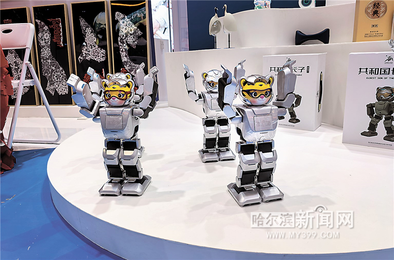 3个月前,哈尔滨亚冬会吉祥物“滨滨”“妮妮”火爆“出圈”,成为让大家认识哈尔滨的文化使者。在深圳文博会上,由四川博章品牌管理有限公司黑龙江省分公司带来的亚冬会特许商品,把人们的记忆拉回到亚冬会赛场。 博章公司运营总监高博介绍,该公司带来纪念章、冰箱贴、钥匙扣、包挂、盲盒和机器人等多种类展品。谈到在此次深圳文博会销售最火爆的商品,高博说,由于年轻人对于盲盒的喜爱,“东北美食系列盲盒”是所有展品中人气最旺的一个——“滨滨”和“妮妮”拿着红肠、马迭尔冰棍、锅包肉、冻梨、冻柿子的可爱形象,让不少年轻人爱不释手。 除了这些小物件之外,在博章展台上还有4个身怀绝技的“大家伙”——“共和国长子”第3代机器人“滨滨”“妮妮”,因其被钢铁衣着包裹的造型,被观众称之为“钢铁侠”。“别看它们的造型有些‘酷’,跳起舞来却是十分可爱。”高博介绍,通过编程,机器人“滨滨”“妮妮”还可以表演踢足球、摔跤等一系列复杂动作。