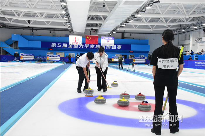 冰壶馆内“燃战火” 高校群英亮锋芒|第五届全国大学生冰壶锦标赛在哈开赛