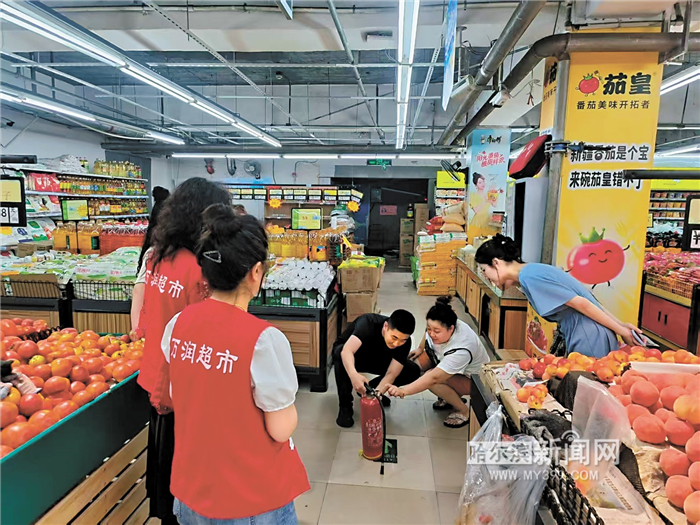 党员干部进社区网格参加安全检查。