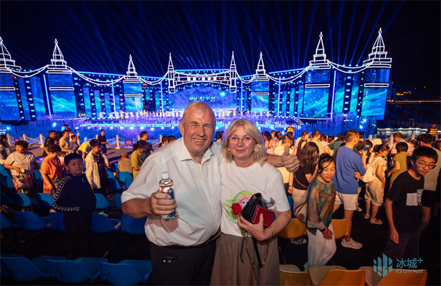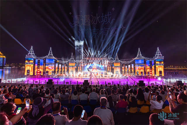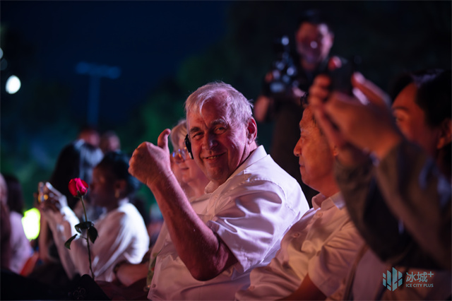 夜幕降临,参访嘉宾来到太阳岛上,伴随着清凉的江风,一起观看《遇见·哈尔滨》大型江上沉浸式演出。手风琴的欢快旋律带动背景舞台的喷泉开始欢乐的舞蹈,嘉宾们和现场观众一起被带入了一场令人惊艳的由声、光、水、电、影、景完美融合的大型演出之中。伴随着剧情推进,哈尔滨城市历史文化徐徐铺陈开来,舞台上上演“交汇的乐章”,交际舞、芭蕾舞以及手风琴、小提琴等演奏,完美呈现了哈尔滨融合多元文化的城市特色,也让嘉宾沉浸其中,不时送上热烈的掌声。
