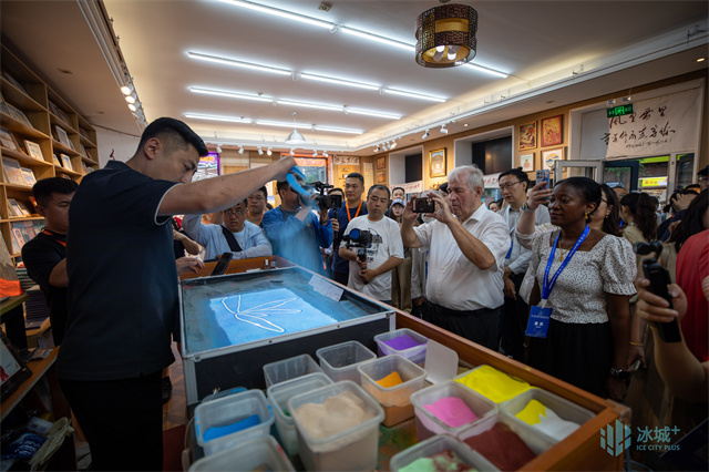在同义庆中外货店大楼前,中国外文局中东欧与中南亚传播中心(人民画报社)外籍专家德温德尔·库马尔不停地按下手机快门。“这座建筑太美了,能帮我拍个照吗?”库马尔请同行的伙伴帮自己与这栋漂亮的老建筑拍照。在中华巴洛克历史文化街区内,嘉宾们还观看了老街泥人、剪纸等非遗表演。街区内的沙画艺术创作体验同样吸引了嘉宾们的目光。沙画师用灵巧的双手创作出一幅幅栩栩如生的沙画作品,让嘉宾们啧啧称赞。