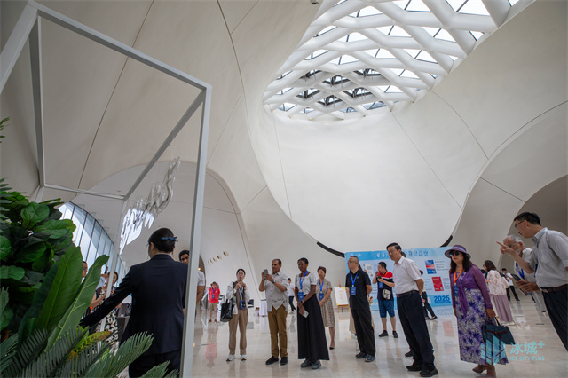 下午,参访团一行先后来到哈尔滨大剧院和哈尔滨音乐博物馆。哈尔滨大剧院独特的建筑艺术之美,让嘉宾们不停地举起手机拍照打卡。在哈尔滨音乐博物馆内,琳琅满目的乐器和珍贵展品诉说着这座城市与音乐的深厚渊源,每一件展品都承载着哈尔滨音乐文化的记忆和传承。馆长苗笛边讲解边唱起的一首首老歌,让巴基斯坦“读懂中国”论坛理事长扎法尔·乌丁·马赫默德十分感慨,“馆长唱的这些老歌让我回忆起了中国留学的青春岁月,太美好了。”扎法尔说,他曾在1976年到1991年间到中国读书,他没想到这么多优秀的歌曲都与哈尔滨有着千丝万缕的联系。