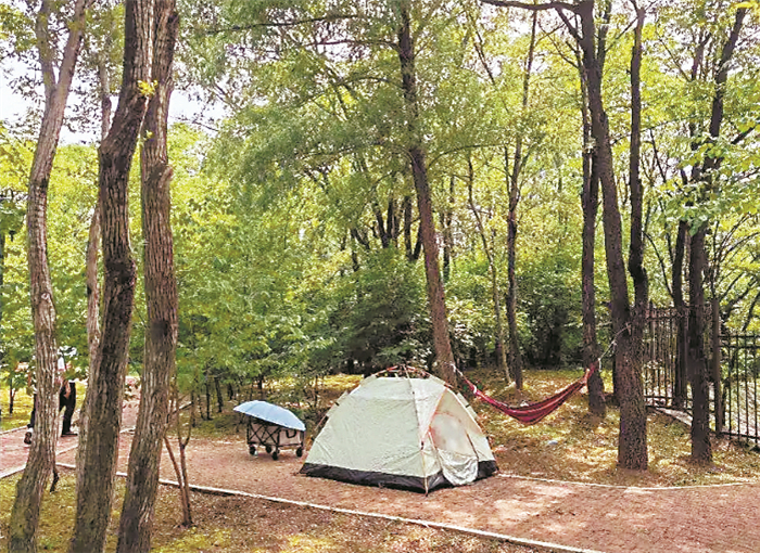 走进哈尔滨市劳动公园,活泼的松鼠在林间蹦跳,喜鹊站在枝头鸣叫;有人在凉亭就餐,有人在石凳上休息,有人搭起帐篷纳凉……行走在树林中,清凉舒适。