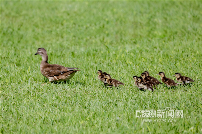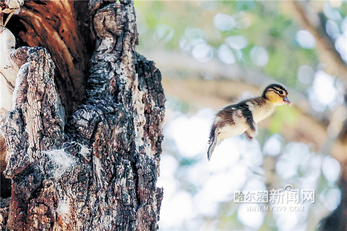 “又一窝全部成功跳巢!今年园内出生的野生鸳鸯宝宝迎来‘大丰收’!”近日,“鸳鸯奶爸”车春虎向记者报来喜讯,兆麟公园内“哈籍鸳鸯”孵化成功的小鸳鸯数量已达150只,创下公园有监测记录以来同期历史繁殖数量之最。