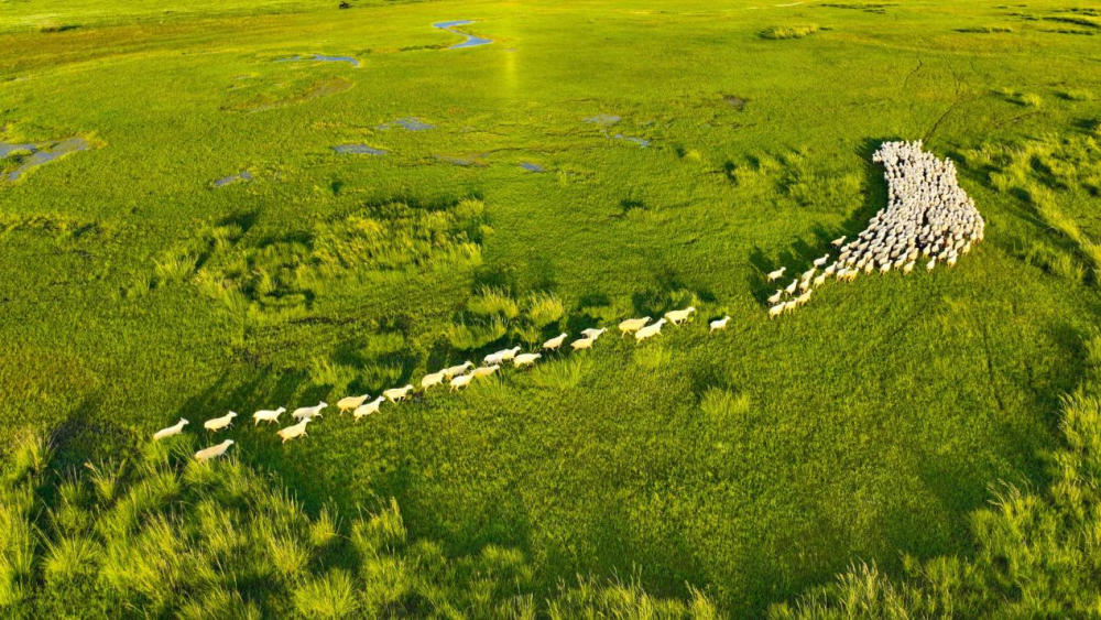 “喝着矿泉水、吃着中草药长大的羊”,是对乌珠穆沁羊饮食结构的生动概括。当地草原上有1027种野生植被,其中372种可作饲草,牧草总营养成分达98%以上。经检测,乌珠穆沁羊必需氨基酸含量较普通羊肉高出18.97%,钙元素约为普通羊肉的4倍,曾供应北京奥运会、上海世博会,2022年入选全国十大优异畜禽种质资源。