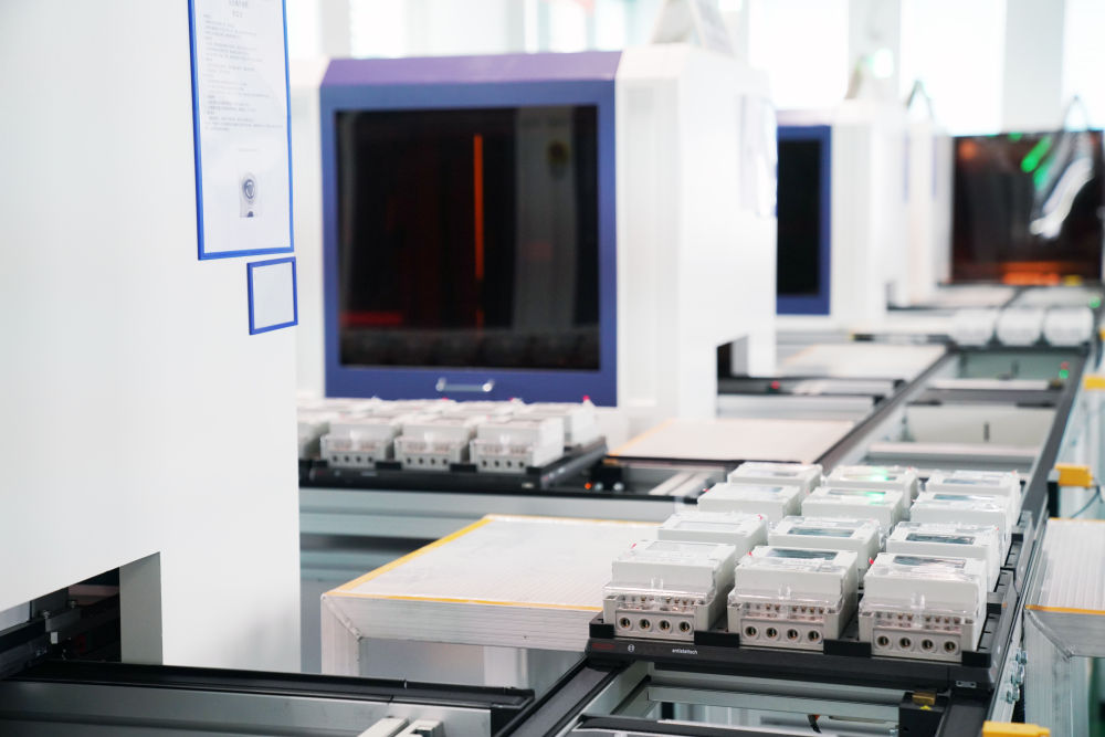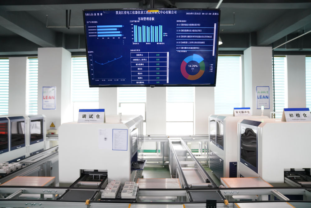 在黑龙江省电工仪器仪表工程技术研究中心有限公司,单相电能表自动生产线在进行检测与调试作业(7月25日摄)。