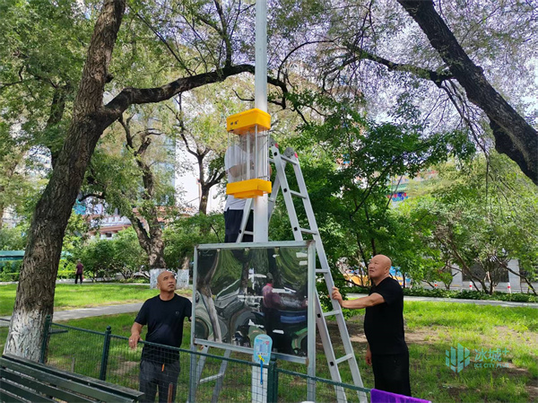 哈市公园试点设置物理灭蚊设备,提升夏夜游园舒适度