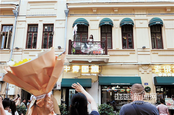 王薪媛家住中央大街附近,已是一位妈妈,她的音乐才艺传承自酷爱歌唱的母亲。“音乐会太好了,不仅展示了‘音乐之城’的风采,更给了我们展示自己的舞台。”首次站上公众舞台的王薪媛脸上洋溢着梦想成真的光彩,“过去在中央大街散步,十分喜欢和向往阳台音乐会。如今,自己站上阳台演唱,儿时的梦想实现了,满满的幸福感。”她最大的心愿,就是用歌声将这份圆梦的喜悦与温暖传递给每一位聆听者。