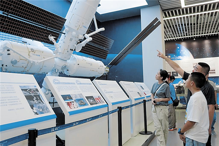 参观者在哈尔滨工业大学航天馆内观摩航天模型。(哈尔滨工业大学供图)
