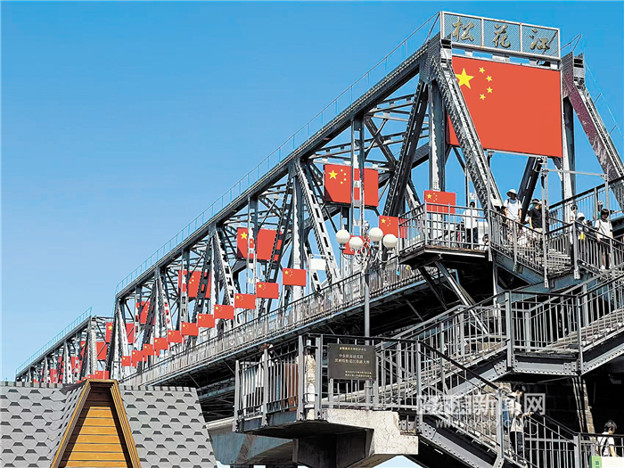 碧水之上,五星红旗与钢铁桥身相互映衬,成为松花江上一道亮丽的风景线。这座承载着历史记忆的百年江桥,正以崭新的姿态向世人诉说着过去的故事,展现着新时代的蓬勃生机。