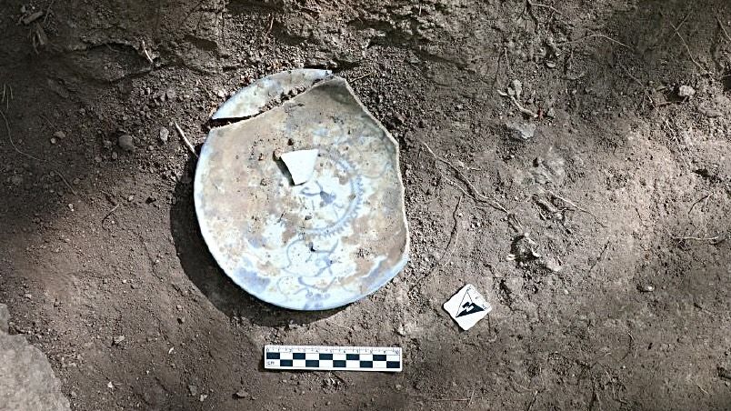 黑龙江鸡冠山东北抗联密营遗址发现的瓷碟。(哈尔滨市委宣传部供图)