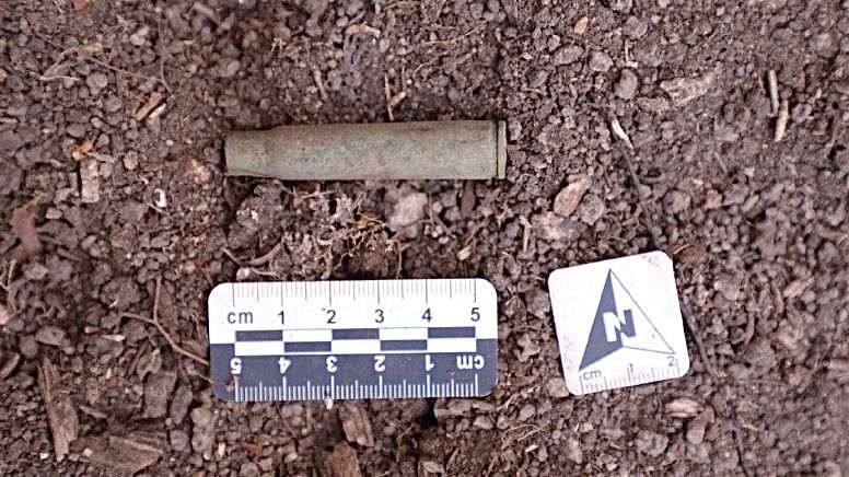 黑龙江鸡冠山东北抗联密营遗址发现的弹壳。(哈尔滨市委宣传部供图)