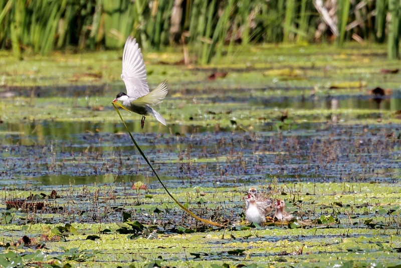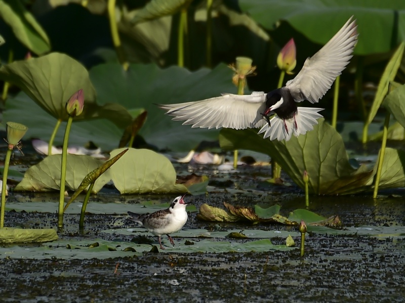 呼兰河口湿地和哈尔滨大剧院湿地,是江鸥扎堆育雏的“秘密产区”。这里水域开阔、鱼虾丰富,芦苇丛连成绿色屏障,为江鸥搭建了天然的“育儿所”。鸟类摄影爱好者杜丽鹃告诉记者说:“上周末我在哈尔滨大剧院的荷花池湿地,远远地就看到了芦苇荡中有上百只江鸥,挑选最佳地点后拉近镜头这才发现,水草深处藏着不少的巢穴,亲鸟正轮流出去觅食,叼回来小鱼虾给巢里的雏鸟喂食,画面特别温馨。”