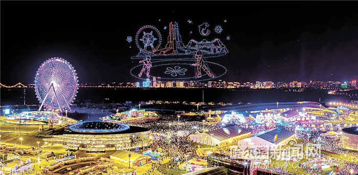 19时30分许,无人机编队再度点亮夜空,璀璨的“无人机烟花”绽放瞬间点燃现场气氛。随后,凤凰造型、2025亚冬会主火炬造型与雪韵丁香字体相继在空中呈现,“186万”这一总入园人次数字醒目展现引发现场一阵赞叹。无人机不断变换的图案将现场氛围一次次推向高潮。