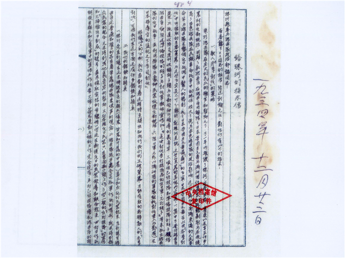 中共满洲省委给珠河的指示信——关于对敌人冬季讨伐的策略。(哈尔滨市档案馆提供,中央档案馆复制件)