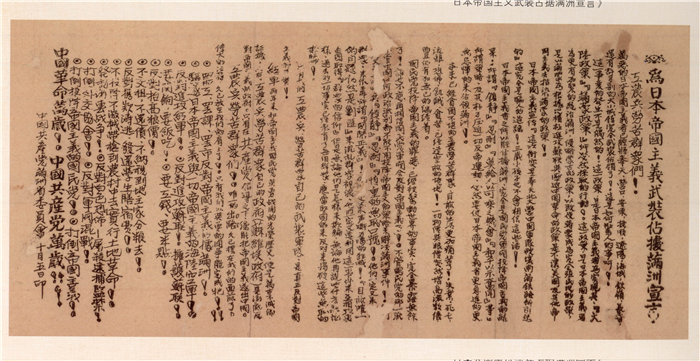 1931年10月5日,中共满洲省委印制的《为日本帝国主义武装占领满洲宣言》。