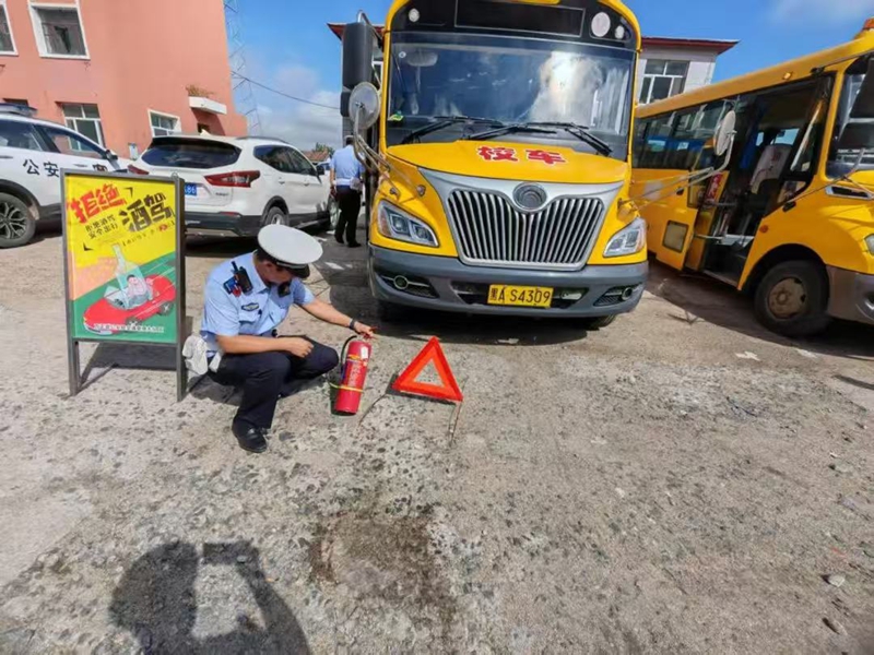 交管部门对校车企业开展宣传教育活动的同时,还对停放在停车场的校车进行了安全检查,重点检查校车制动、安全带、安全锤、急救箱、灭火器等设施的配备与有效性,核验校车专用标识、停车指示牌、车身反光标识等标识装置,保障恶劣天气与夜间行车安全。