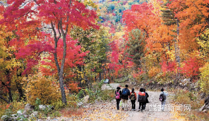 抬头望去,阳光透过枝叶的缝隙,将五角枫、紫椴的叶子晕染得通透,橙红、金黄、赭褐交织,宛如大自然精心绘就的彩色画卷。
