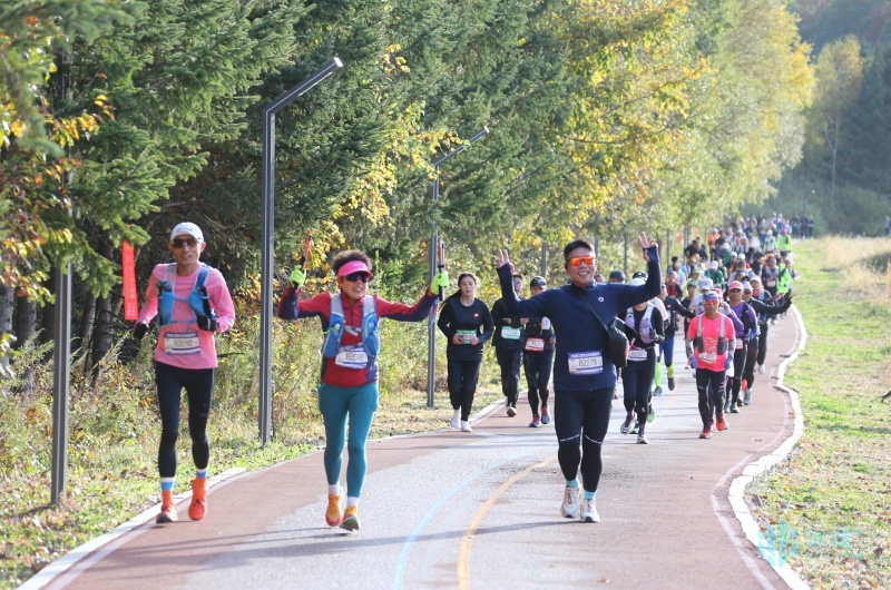 当日5时30分,身着统一参赛服的选手陆续抵达,有序完成签到、存包、热身等赛前准备,脸上满是期待。“听说亚布力赛道有‘云端赛场’之称,我特意乘专列来感受山林奔跑的快乐!”哈尔滨40公里组选手王先生边拉伸边说。赛事赛道设计独具匠心,“三锅连穿+四季赛道”让选手沉浸式感受自然之美。三锅盔山赛段,嶙峋奇石作路标,选手或穿岩缝或攀陡坡,山谷溪流与清风让大家直呼“过瘾”;二锅盔山密林里,腐叶松针铺就“天然跑道”,阳光透过枝叶洒下斑驳光影,选手穿梭其间如融于自然;大锅盔山“云端赛道”上,选手沿山脊线奔跑,脚下云海翻滚、身旁山风呼啸,不少人驻足记录震撼瞬间。亚布力滑雪场的赛道藏着别样风情——入秋后,部分草坪仍保持着翠绿,与金黄落叶交织出独特景致。“夏天的滑雪场和冬天完全不一样,跑在昔日雪道上很新奇!”冬季常赴亚布力滑雪的22公里组选手李女士表示,沿途补给站不仅有水、饮料、还有热食与水果,工作人员的服务格外暖心。