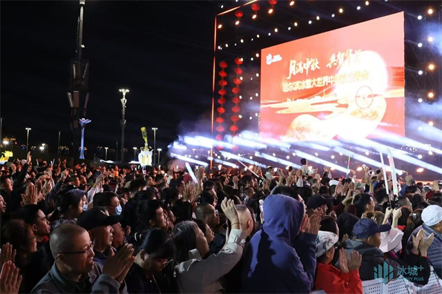 园区大舞台演出同样备受瞩目。黑龙江省文联文艺志愿服务惠民专场演出、哈尔滨冰雪大世界双节特别演出、2025中秋文艺晚会、全球华语流行音乐金榜选拔赛黑龙江省总决赛等相继举办,众多歌唱家、国家级演员、知名演艺团队及网红达人登台献艺。从万人齐唱《歌唱祖国》、共传五星红旗的爱国情怀,到海外游子跨山海共唱《月亮代表我的心》的思乡之情,再到数万人园区齐蹦迪的热闹场景,线上直播引发各地网友打卡点赞,台上台下的温情互动,成为双节最浪漫的注脚。