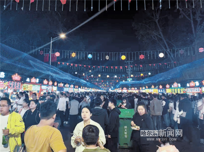 “十一”假期,师大夜市累计接待游客量突破30万人次,同比增长10%,成为哈尔滨假期文旅美食“顶流”打卡地之一,凸显冰城夜经济活跃度。