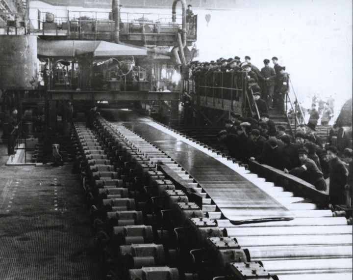 这是101厂(今东北轻合金有限责任公司)生产的第一块铝板(1956年摄)。东北轻合金有限责任公司供图