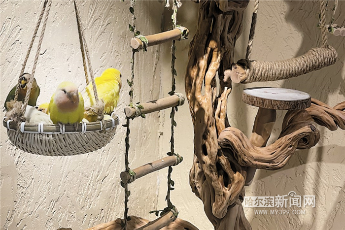 店主小李来自七台河,凭借对市场的敏锐感知,将佳木斯首店的鸟咖模式复制到哈尔滨。“中央大街一带客流量大,外地游客多,打造可让顾客沉浸其中的深度体验项目一定有发展前景。”小李说。他在网上搜索发现,哈尔滨类似的“鸟咖”不足五家,很多年轻人因居住条件限制无法养宠,“鸟咖”正好能满足这部分群体的需求。