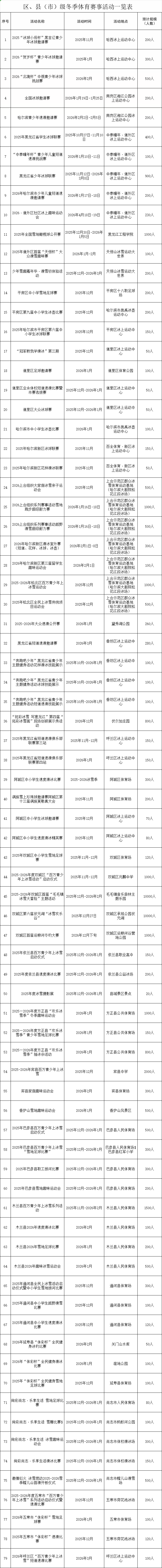 中国-上海合作组织冰雪体育示范区冬季体育赛事活动今冬燃动冰城,两大板块、149项赛事活动覆盖整个冰雪黄金季