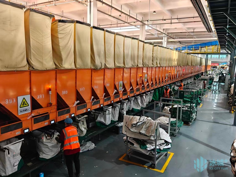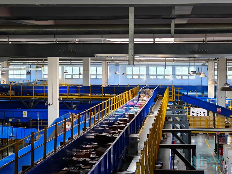 位于三层的小件分拣机可在两端同时落格,加快分拣速度,配有36个供件台、432个格口,可覆盖省内12个市、1个地区和部分省际封发局,可直封到全省52个县、哈尔滨市内61个揽投部和15个量大地市县揽投部,加上异型件分拣系统,效率可达6.3万件/小时。