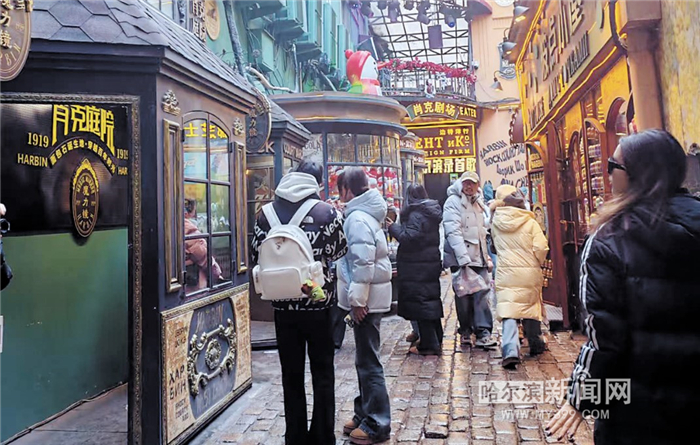 11月29日,位于中央大街的肖克庭院迎来一波打卡热潮。拱形玻璃窗、铁艺雕花座椅、暖黄壁灯与墨绿门廊,构成电影感十足的打卡点位,吸引众多市民游客专程前来拍照。