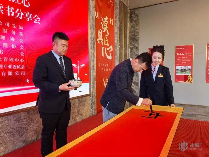 随后的“升华·宪彩飞扬”环节,各岛推选代表依次登台,分享小组讨论核心观点与阅读体会。发言者或结合亲身经历阐述宪法保障,或展望对法治社会的美好愿景,充分展现了读书会带来的思考深度。紧接着,特邀书法家现场挥毫,笔走龙蛇,书写法治格言,将传统书法艺术与现代法治精神完美结合,赢得全场掌声。活动尾声,主办方向华瑞物业“法律明白人”代表赠送了《中华人民共和国宪法》单行本及法治书籍,并发出“争做宪法忠实崇尚者、自觉遵守者、坚定捍卫者”的倡议。