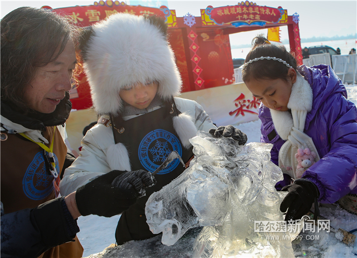 和冰雕大师一起体验下雕刻冰雪的感觉。