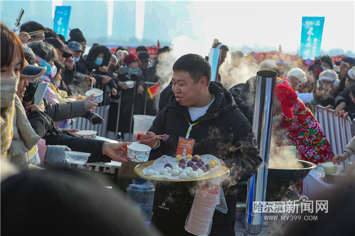 来采冰节的市民游客热情似火,服务人员忙得不亦乐乎。