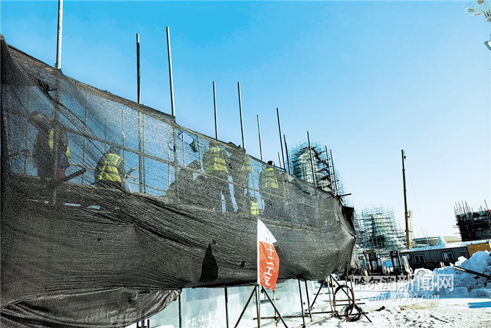 目前,冰雪大世界园区正在紧锣密鼓建设中,记者从黑龙江省建筑安装集团了解到,在建设过程中,避免冰建被阳光直射是重要保护措施。第二十七届哈尔滨冰雪大世界冰雪建设施工项目副总指挥、龙江安装工程管理部总经理李世滨介绍,在距离冰建1米左右处搭建脚手架,周围用黑色遮阳网挡住中午直射冰建的阳光。因为即使在-20℃气温下,中午阳光的直射也会影响冰的质量,所以,搭建黑色“防晒服”可以有效减少阳光对冰体的热辐射,避免冰块受热而影响通透性。