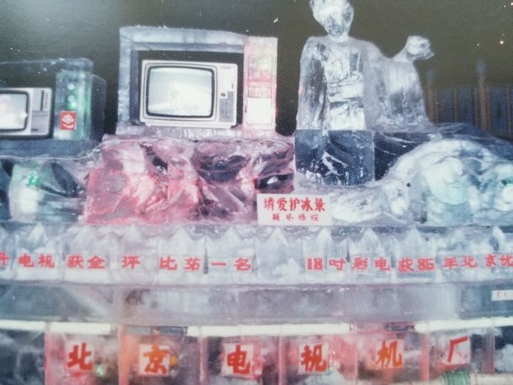 1988年,第十四届哈尔滨冰灯游园会的冰广告。