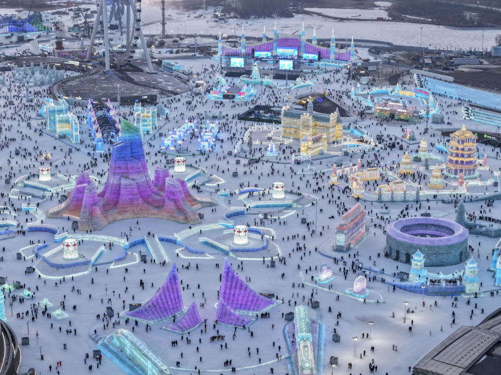 2026年1月5日,第42届中国·哈尔滨国际冰雪节在哈尔滨冰雪大世界开幕(无人机照片)。
