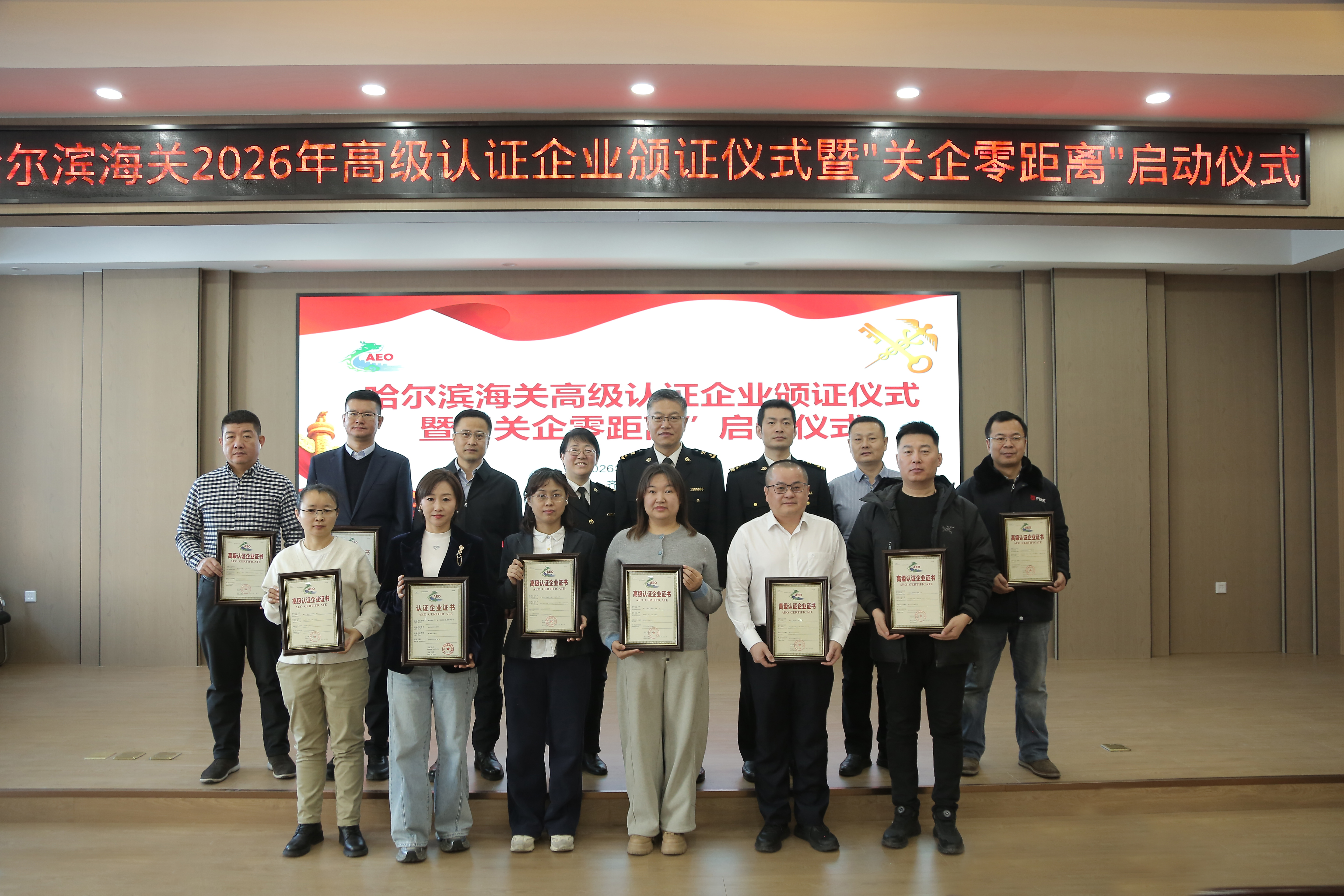 23日,记者从哈尔滨海关获悉,1月20日,哈尔滨海关高级认证企业(AEO)颁证仪式暨“关企零距离”政策宣讲会举行,为2025年首次获得海关高级认证企业资格的7家黑龙江企业和通过海关高级认证企业复核的3家企业颁发证书。同时,正式启动“关企零距离”服务品牌。据统计,截至2025年底,哈尔滨海关高级认证企业已增至38家。